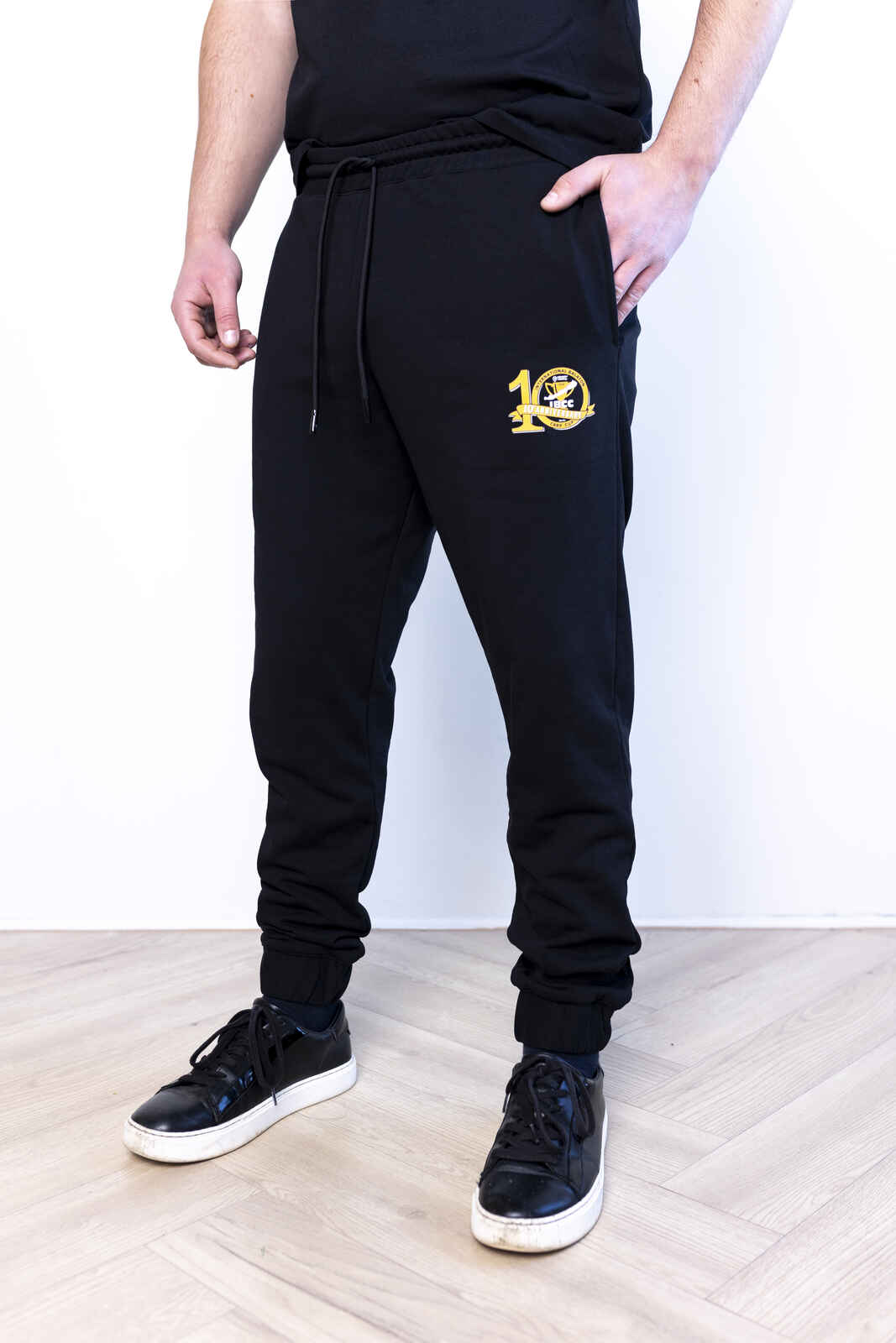 Kényelmes fekete hosszúnadrág elől szublimált logóval.