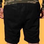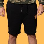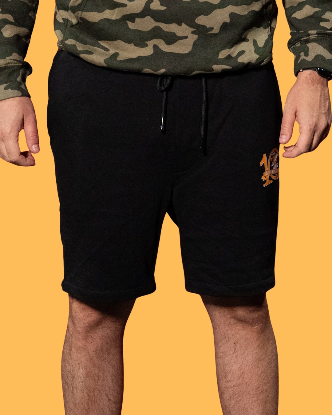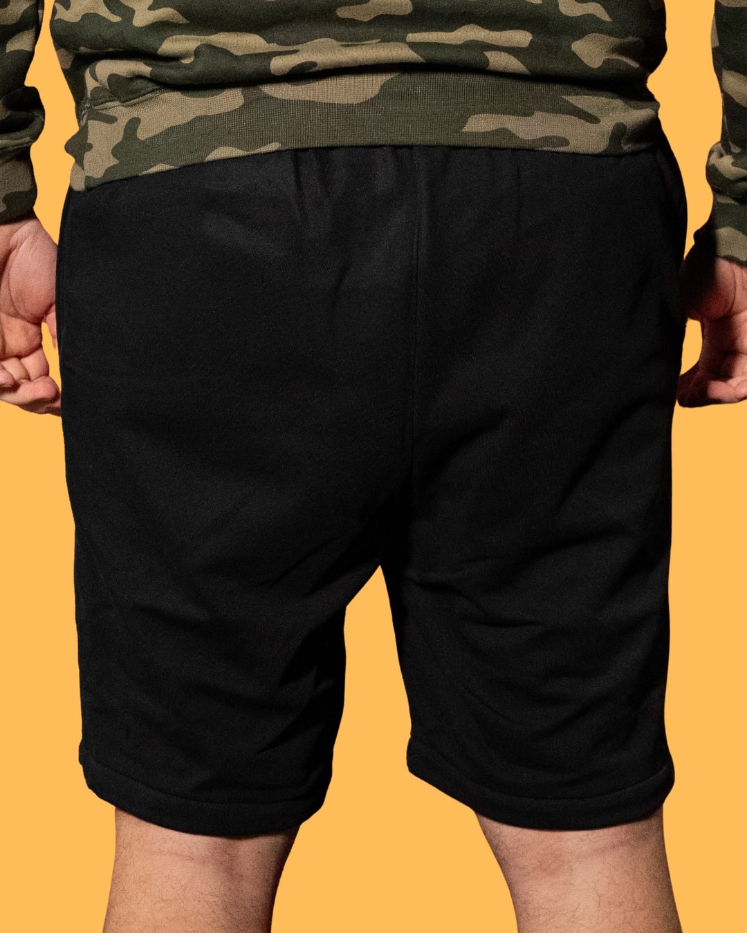 Kényelmes fekete rövidnadrág elől szublimált logóval.
